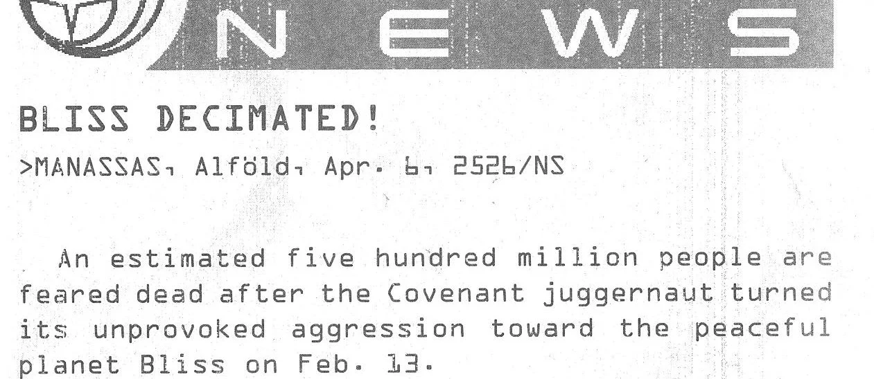 An excerpt from Intersystem News describing the tragic events on Bliss, dated April 6th, 2526. (Halo: Reach/Dr. Halsey's Journal)