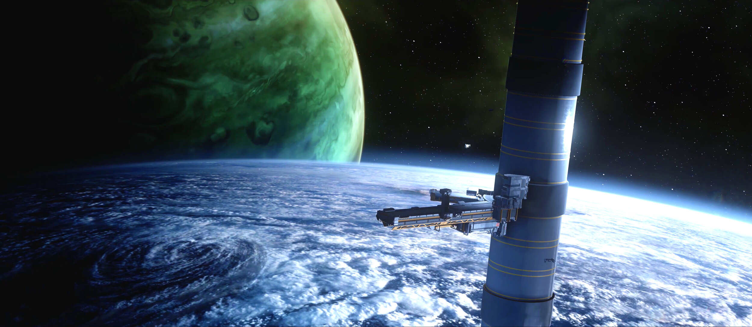 Meridian from orbit, Pinnacle Station shown in the foreground, October 25th, 2558. (Halo 5: Guardians)