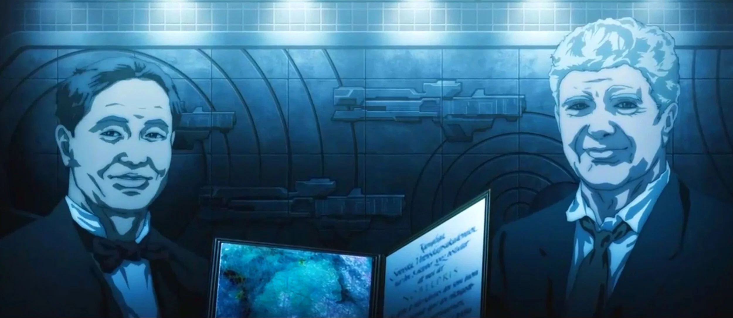 Tobias Shaw and Wallace Fujikawa receive the Nobel Prize for their discovery of translight travel, c. 2291. (Halo Legends/Origins II)