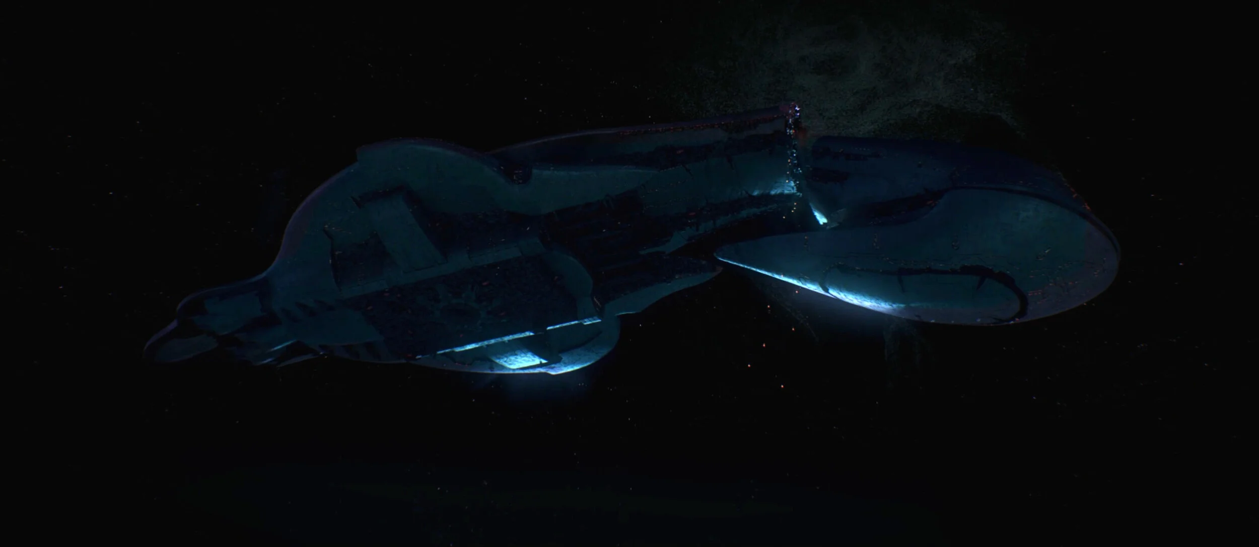 The Enduring Conviction was a CAS-class assault carrier in the Covenant fleet in the final few years of the Human-Covenant War. Following the Great Schism, the ship remained under Sangheili control by shipmaster Let ‘Volir, though it eventually changed allegiances to the Banished in 2553. For the next six years, the ship stood as the flagship of the Banished forces, fighting against the UNSC Spirit of Fire during the Second Ark Conflict in 2559. Through the use of its glassing beam, the UNSC forces were able to trigger the Ark’s sentinels to attack the Enduring Conviction, slicing it in half and sending it to crash onto the surface of the Ark.